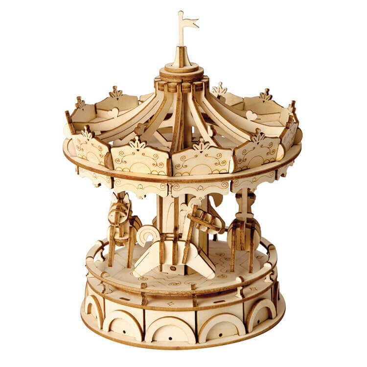 A 3D fa modell körhinta a gyerekszoba, de a nappali szemet gyönyörködtető dísze is lehet. A 174 darab lézervágott fa elemből álló csomag összerakása kicsiknek, de akár felnőtteknek is jó szórakozást, kellemes kikapcsolódást nyújt, az eredmény pedig magáért beszél! További 3D fa modellek a Fakopáncs Játék Webáruházban