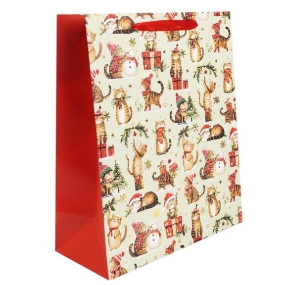 Ajándéktasak - kicsi (cicák piros sapkában, zöld alapon)