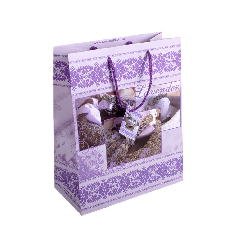 Ajándéktasak - közepes (lila alapon, levendula képek)