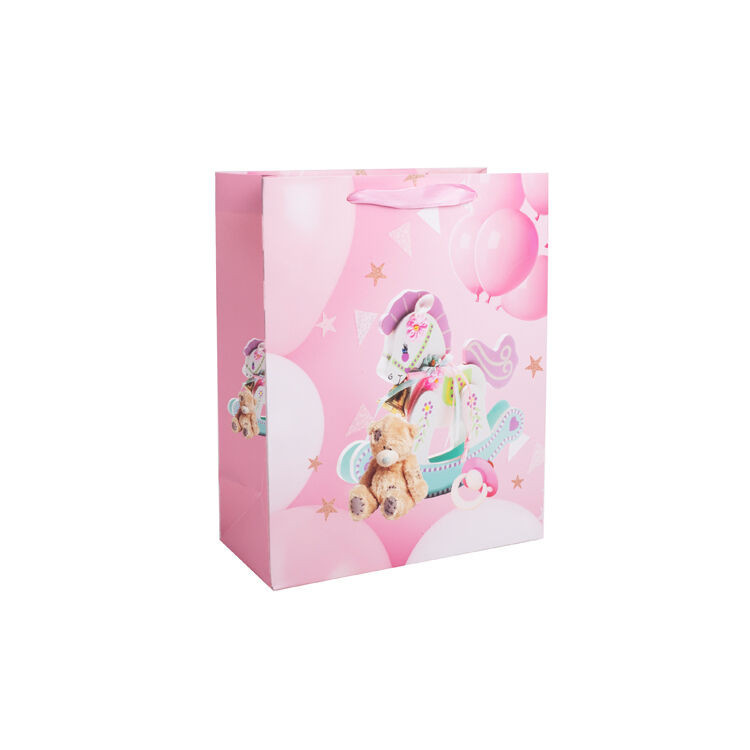 Ajándéktasak - közepes (rózsaszín, hintaló macival)