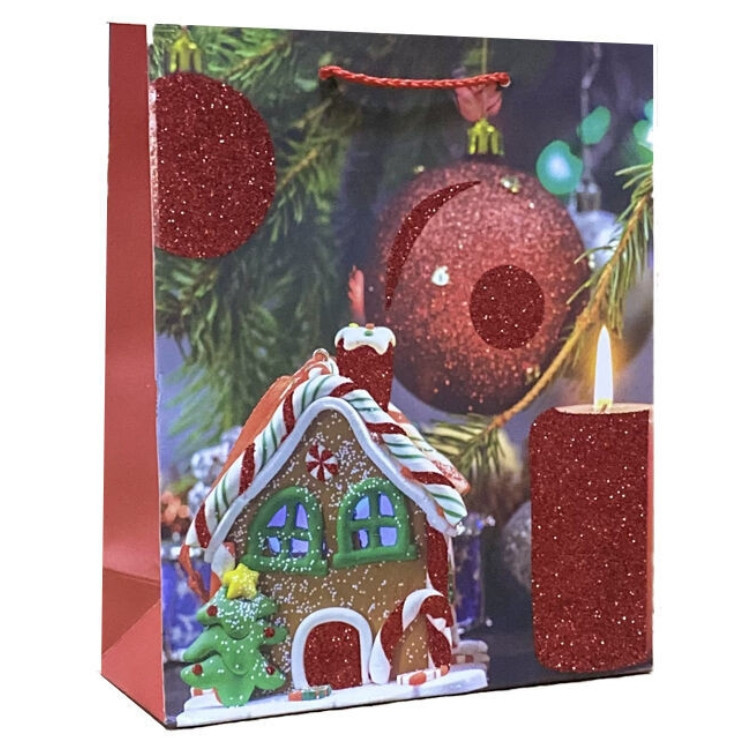 Ajándéktasak - nagy (mézeskalácsház, piros gömb)