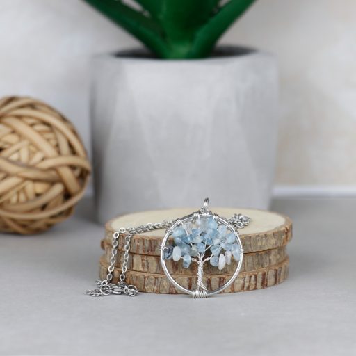 Akvamarin életfa medál, lánccal
