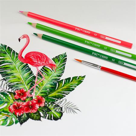 Akvarell ceruza készlet, hegyezővel, ecsettel, KORES, 12 különböző szín