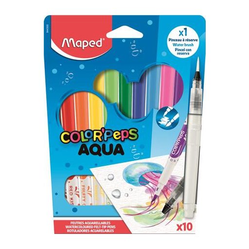 Akvarell filctoll készlet, 3,6 mm, ecsettel, MAPED "Color'Peps Aqua", 10 különböző szín