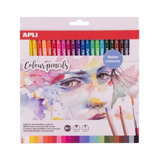 Akvarell színes ceruza készlet, háromszögletű, ecsettel, APLI, 24 különböző szín