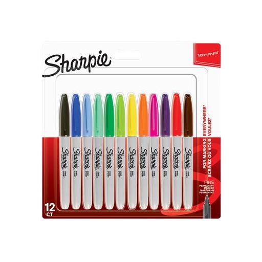 Alkoholos marker, 1 mm, kúpos, SHARPIE "Fine Point", 12 különböző szín