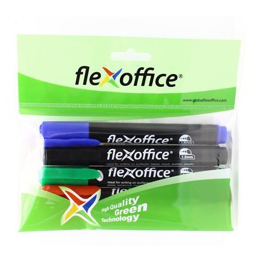 Alkoholos marker, 1,5 mm, kúpos, FLEXOFFICE "PM03", 4 különböző szín