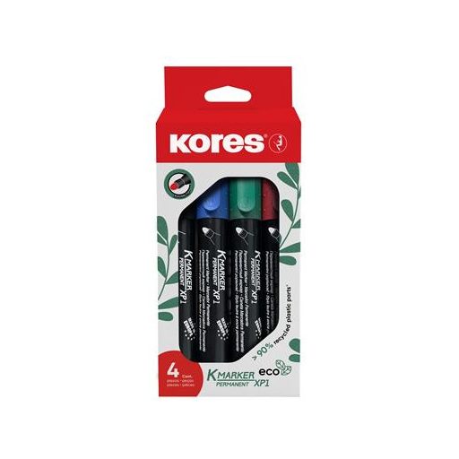 Alkoholos marker készlet, 3 mm, kúpos, KORES "ECO K-Marker XP1", 4 különböző szín