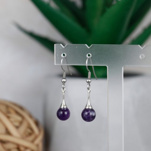 Az ásvány 8mm-es , a kehely réz-ródium bevonattal, a fülbe akasztható rész nemesacélból készült