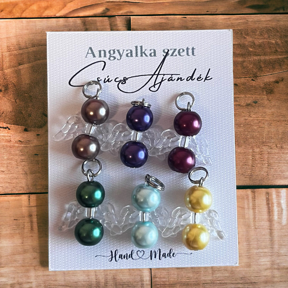 Angyalka szett kulcstartóra, táskára, pénztárcára tehető de akár medálként is hordható.