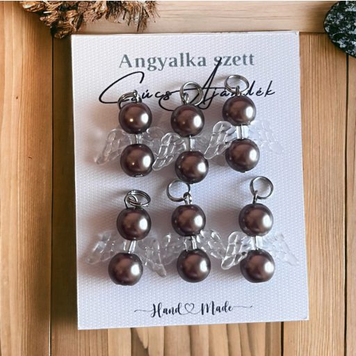 8mm-es tekla gyöngyből készült, átlátszó angyalka szárnnyal.