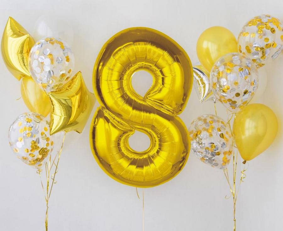 Arany 8-as Gold szám fólia lufi 92 cm