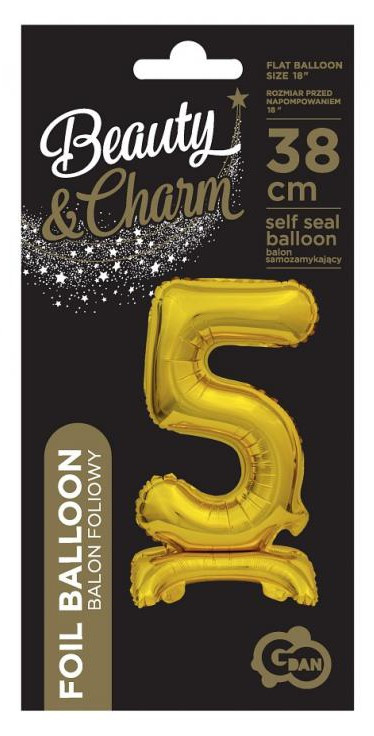 Arany mini 5-ös szám fólia lufi talppal 38 cm