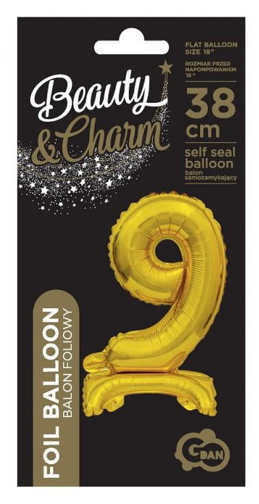 Arany B&C Gold mini 9-es szám fólia lufi talppal 38 cm