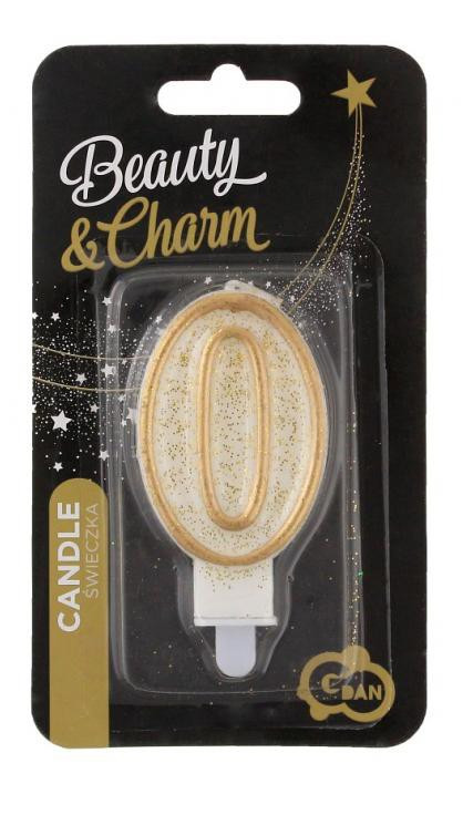 Arany csillámos számgyertya, tortagyertya 0-ás