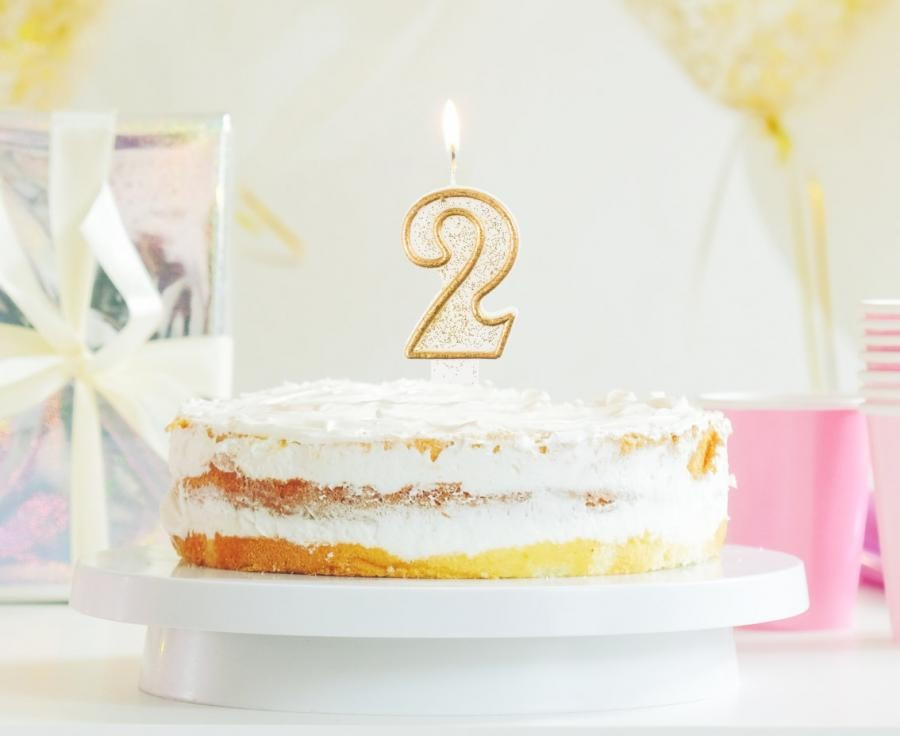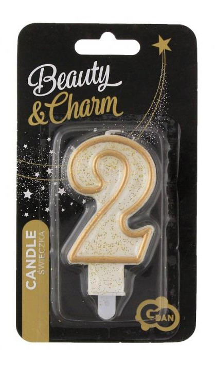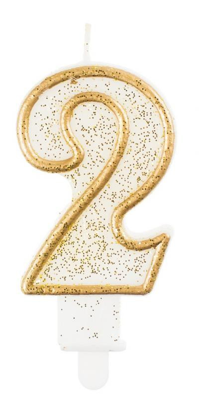 Arany csillámos 2-es Gold számgyertya, tortagyertya
