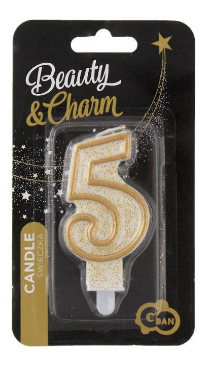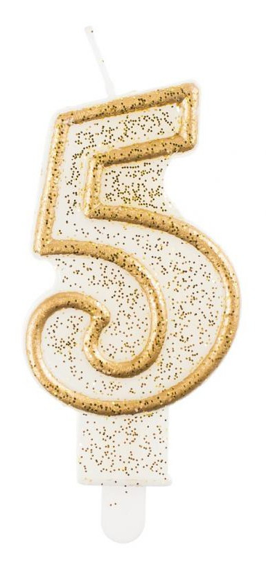 Arany csillámos számgyertya, tortagyertya 5-ös