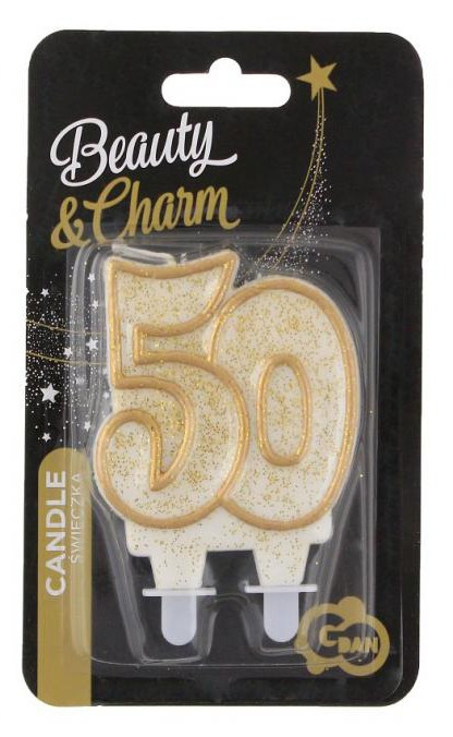 Arany csillámos 50-es Gold tortagyertya, számgyertya