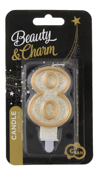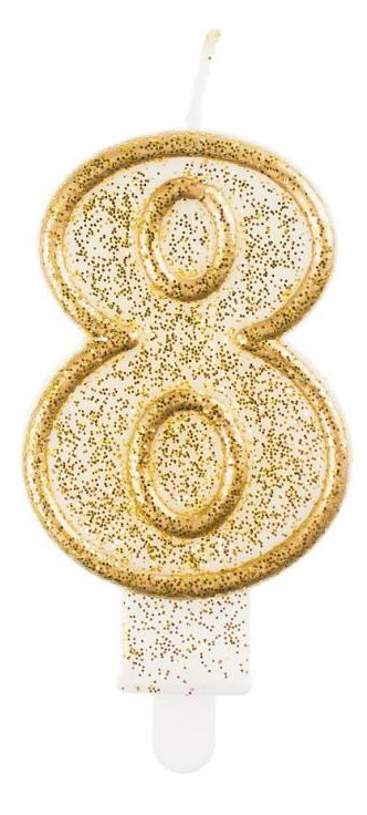 Arany csillámos 8-as Gold számgyertya, tortagyertya