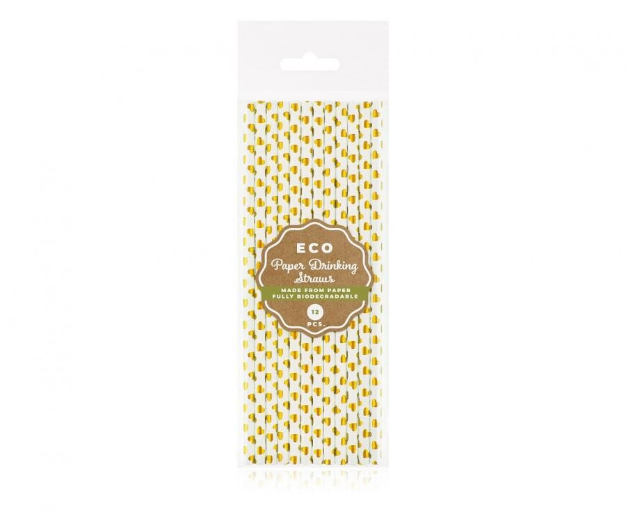 Arany szív papír szívószál 12 db-os