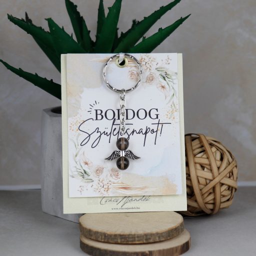 8 mm-es füstkvarc ásványból készült angyalka kulcstartó.