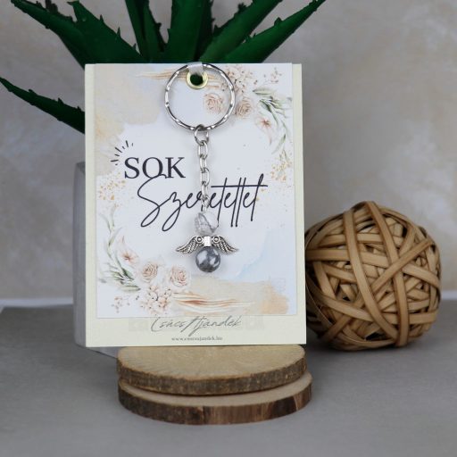 8 mm-es howlit ásványból készült angyalka kulcstartó.