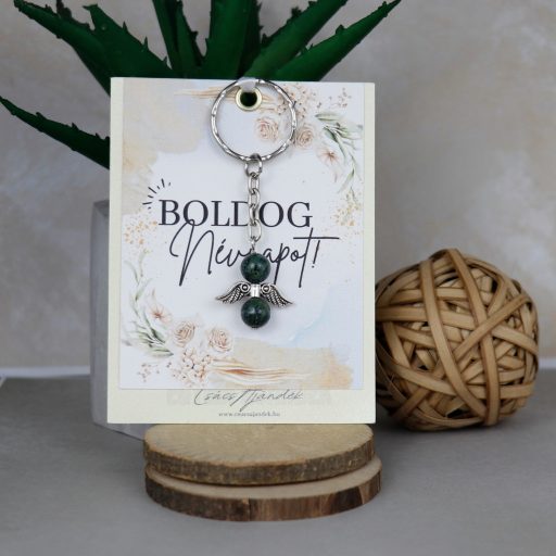8 mm-es kambaba jáspis ásványból készült angyalka kulcstartó.