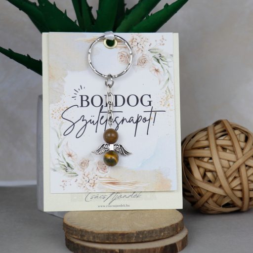 8 mm-es mokait ásványból készült angyalka kulcstartó.