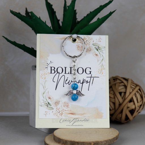 8 mm-es apatit ásványból készült angyalka kulcstartó.