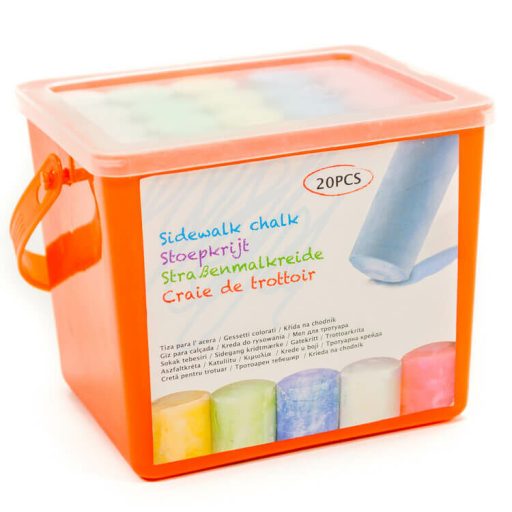 Színes aszfaltkréták. A műanyag vödör 20 darab krétát tartalmaz. Vastag kialakítású, így már a legkisebbek is könnyen kézbe tudják venni. Játszótéren vagy a ház előtti járdán remek rajzokat lehet vele készíteni. Az alkotás közben fejlődik a gyermekek kreativitása és finommotoros készsége.