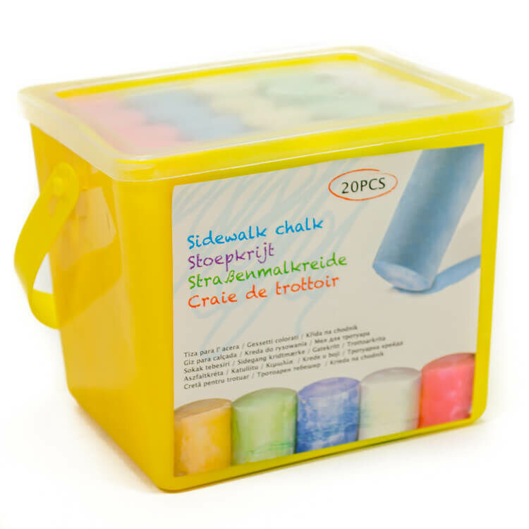 Színes aszfaltkréták. A műanyag vödör 20 darab krétát tartalmaz. Vastag kialakítású, így már a legkisebbek is könnyen kézbe tudják venni. Játszótéren vagy a ház előtti járdán remek rajzokat lehet vele készíteni. Az alkotás közben fejlődik a gyermekek kreativitása és finommotoros készsége.