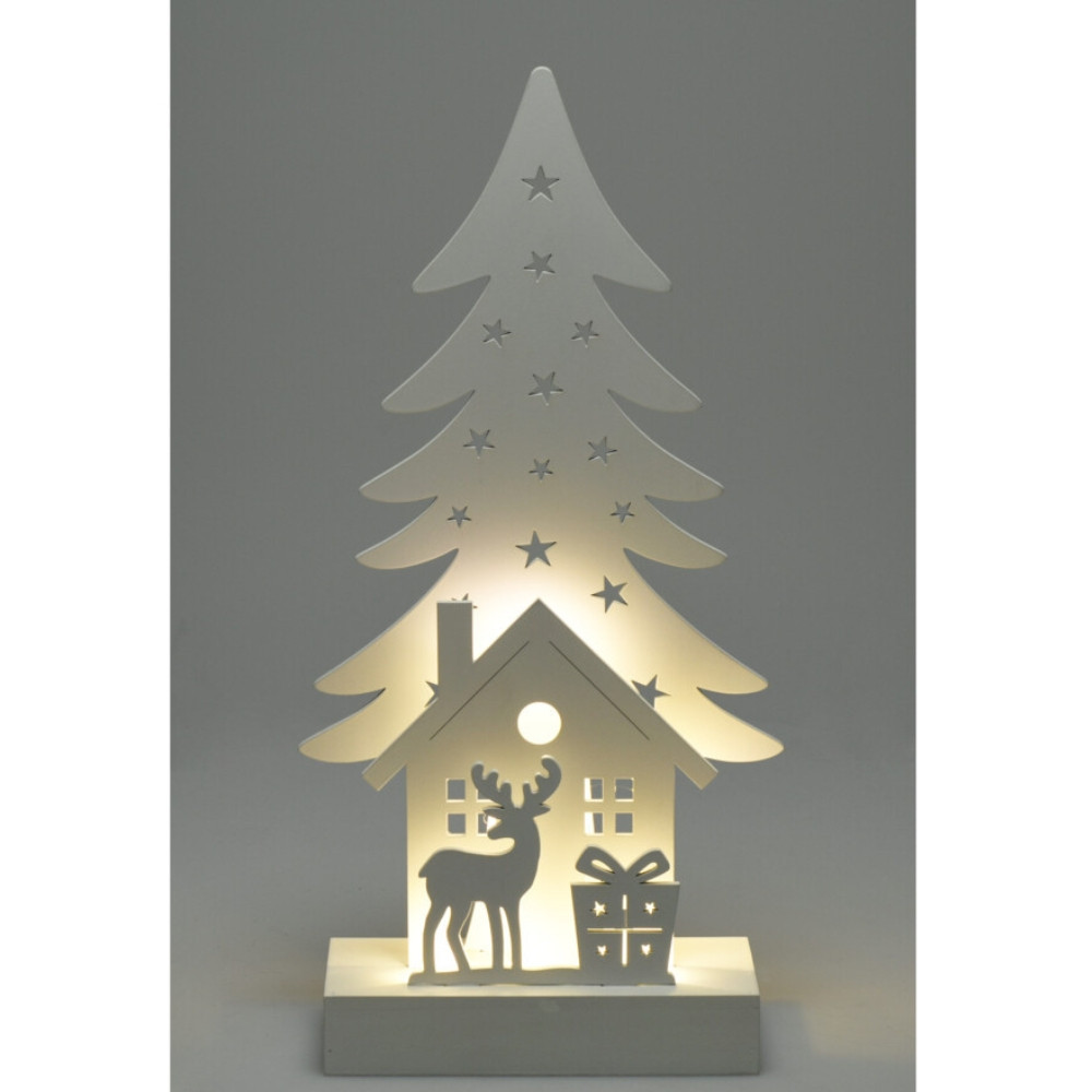 Asztaldísz LED világítással (szarvas, fenyő, ajándék)