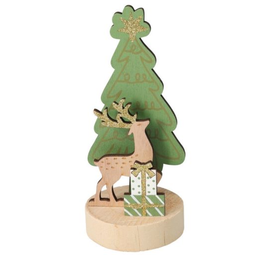 Asztaldísz -fa zöld fenyő szarvassal, zöld ajándékokkal