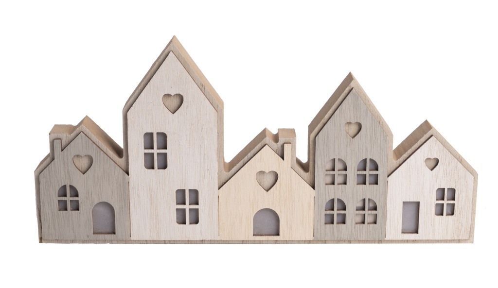 Asztaldísz világítós házsor (szívecskés)