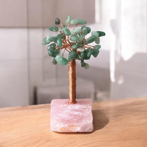Aventurinnal dísztett ásványfa rózsakvarc alapon.