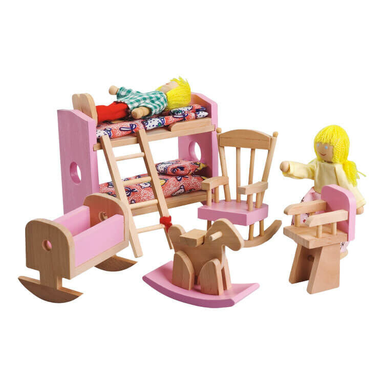 A bababútor szett egy igényesen kialakított, fa anyagból készült kiegészítő kollekció, amely tökéletes választás minden gyerekszobába. A szett tartalmaz egy emeletes ágyat, hintaszéket, etetőszéket, bölcsőt és hintalovat, amelyek mindegyike finoman kidolgozott, biztonságos és esztétikailag is vonzó. Ez a bababútor szett nemcsak praktikus, hanem hozzájárul a gyerekszoba varázslatos és játékos atmoszférájának megteremtéséhez is.