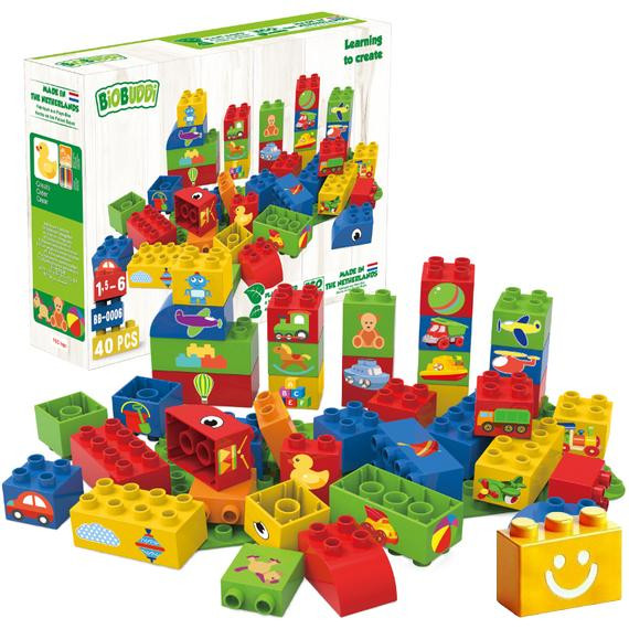 Ez a különleges kicsiknek szóló játék NEM a LEGO® terméke, hanem BiOBUDDi® márkájú. Az építőkockák teljesen összeépíthetőek az ismert dán márka nagy méretű építőkockáival.