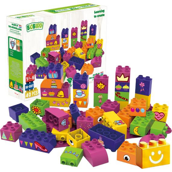 A BiOBUDDi Tanulás - alktoni jó, lányoknak szóló, vidám és színes építőelemekkel rengeteg a lehetőség, hogy szuper csajos dolgokat alkossatok. A kockákkal való építés számtalan órányi szórakozást nyújt, és lehetőséget ad a finommotorika erősítésére is.
