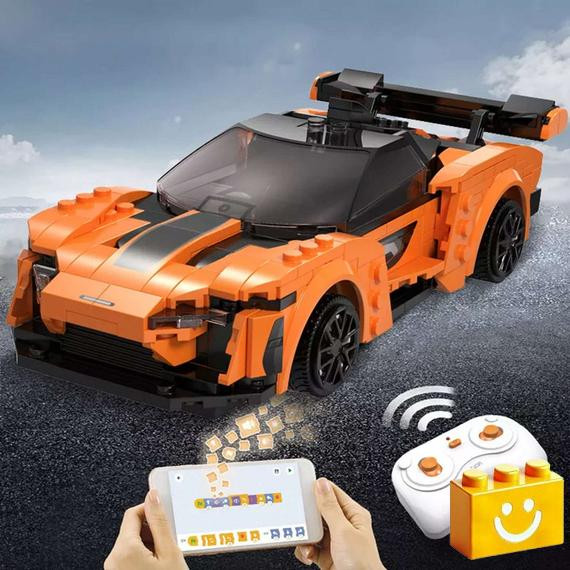 CaDA® C51075W - Narancssárga versenyautó, kompatibilis, távirányítós építőjáték fiúknak
