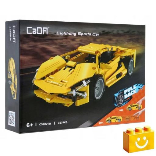 CaDA® C52021W - Lighting sárga sportkocsi, technic-kompatibilis felhúzható építőjáték fiúknak