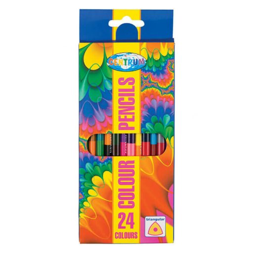Háromszög alakú Centrum színes ceruza, 12 db-os. Kettő véggel rendelkeznek a színes ceruzák, így összesen 24 különböző színnel színezhetünk a készlettel.