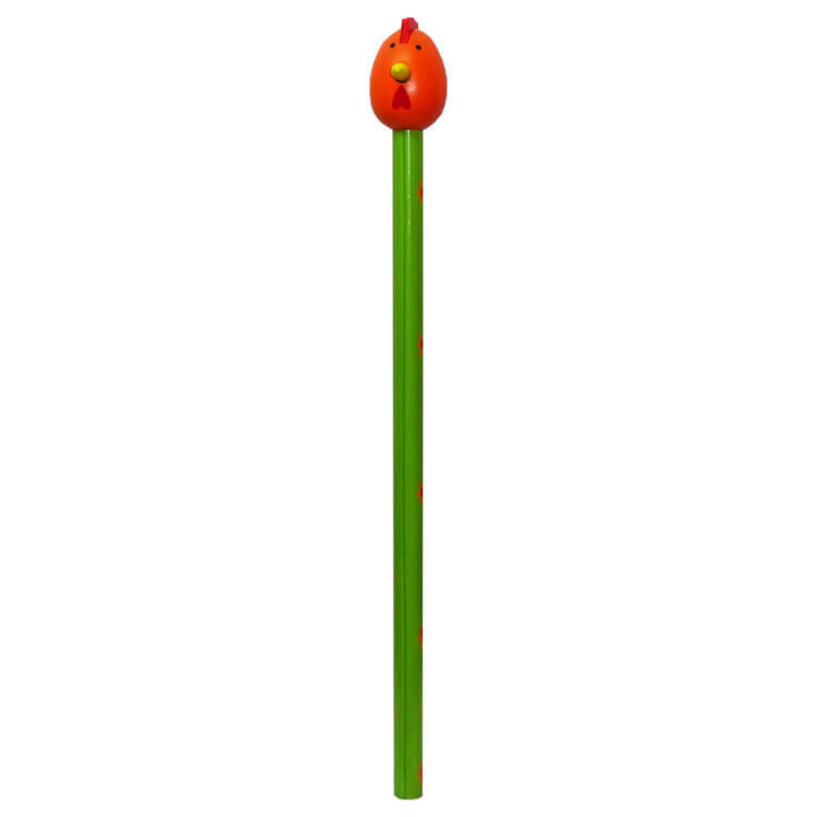 Színes fából készült ceruza csibével a végén. A bájos figurának és vidám színeinek köszönhetően a gyerekek garantáltan nagy örömmel veszik a kezükbe. Ezzel a ceruzával a rajzolással töltött idő még szórakoztatóbb. Kitűnő ajándék óvodásoknak, kisiskolásoknak például sorjátékokhoz.