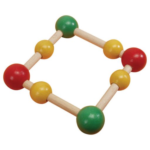 Fából készült négyzet alakú, natúr csörgő. 8 db színes golyó található rajta, melyből 4 db mozgatható. Méretének és kialakításának köszönhetően könnyen kézbe tudják venni már a legkisebbek is. A 4 db mozgatható golyó garantáltan leköti majd a babák figyelmét. A játék fejleszti a babák finommotorikus készségét, valamint a tapintás-és hallás érzékelését.