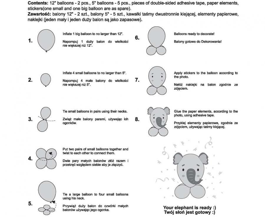 Cute Animal Elephant, Elefánt léggömb, lufi szett