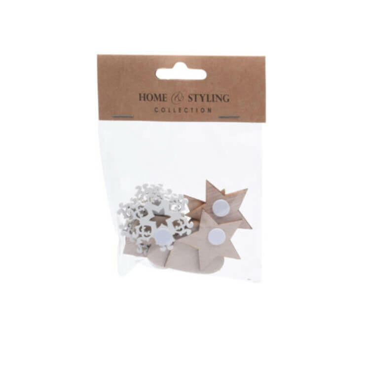 12 darabos öntapadós csillag, szív és hópihe dekorációs figura.Tiszta, zsírtalan felületen megtapad a korongjával, külön ragasztani nem szükséges.