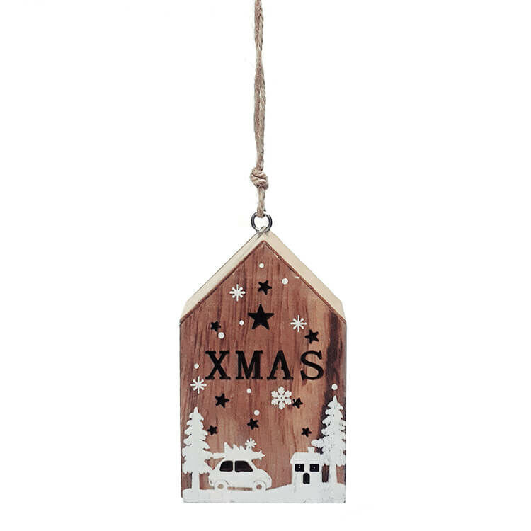 Dekorációs figura (házikó, fehér karácsonyi mintával, LED világítással)