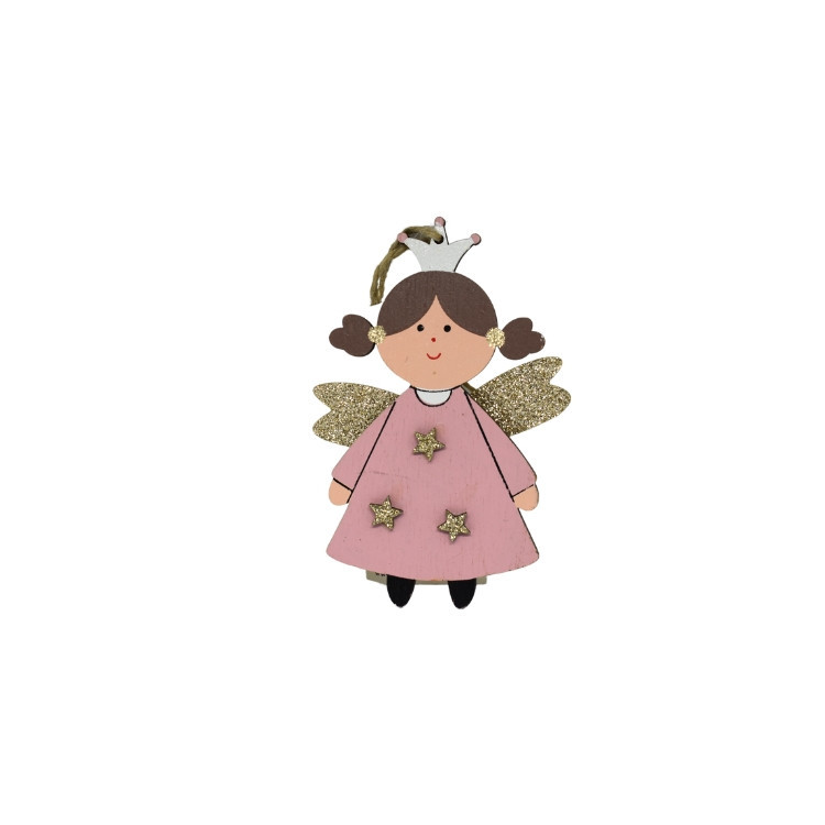 Dekorációs figura (rózsaszín angyal 3 csillaggal a ruháján)