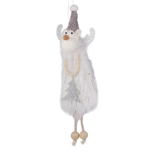Fedezze fel modern és izgalmas játékainkat, vásárolja meg termékünket kényelmesen webáruházunkból! Plüssből és textilből készült dekorációs figura-fehér szőrme ruhában rénszarvas ezüst fenyővel. Ideális belső terek karácsonyi díszítéséhez. Magasság:19cm
