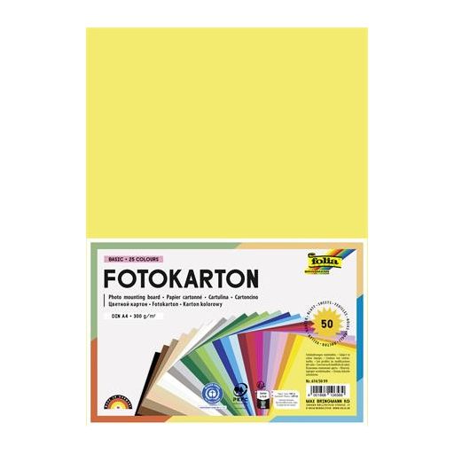 Dekorkarton, A4, 300 g, 25x2 lap, FOLIA, vegyes színek