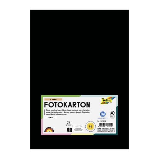 Dekorkarton, A4, 300 g, 50 lap, FOLIA, fekete